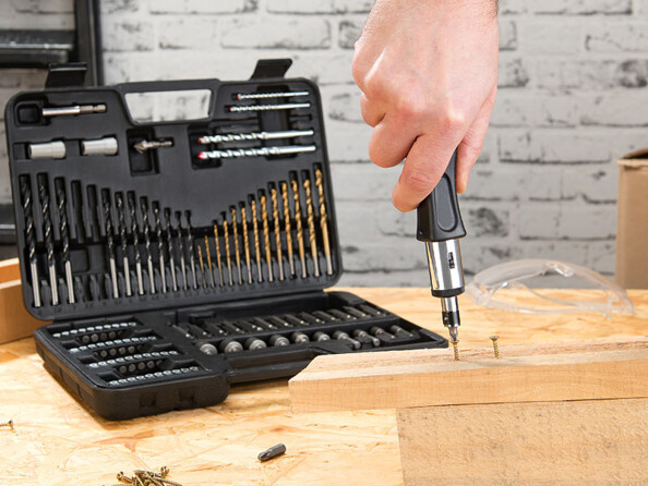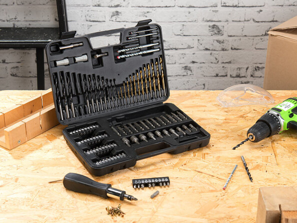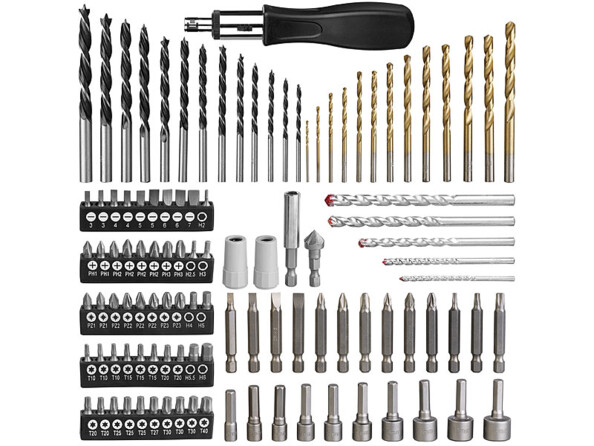 Ce coffret pour bricoleurs comporte 109 pièces : de nombreux types de forets et embouts de différents formats et conçus pour différents matériaux.