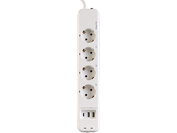 Grâce aux ports USB de la multiprise, rechargez vos différents appareils mobiles avec un simple câble USB. Plus besoin d'adaptateur secteur ! La multiprise est équipée de 2 ports USB type A et un port USB type C.