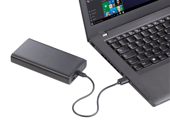 Cette batterie nomade convient à tous vos appareils mobiles : grâce à une technologie de pointe, le courant de charge USB s'adapte automatiquement à chaque appareil. iPhone, lecteur MP3, etc. sont chargés avec 5 V en standard. Les autres appareils mobiles à charge rapide reçoivent jusqu'à 12 V de tension de charge. Et grâce au port USB-C avec Power Delivery, vous rechargez même un MacBook. Contrairement à un port de charge USB standard, ce port prend en charge les tensions de charge de 9 et 12 V en plus de la tension de 5 V. Et cela jusqu'à 3 ampères ! Ainsi, votre ordinateur portable Apple et les autres appareils compatibles sont rechargés en un rien de temps.