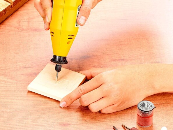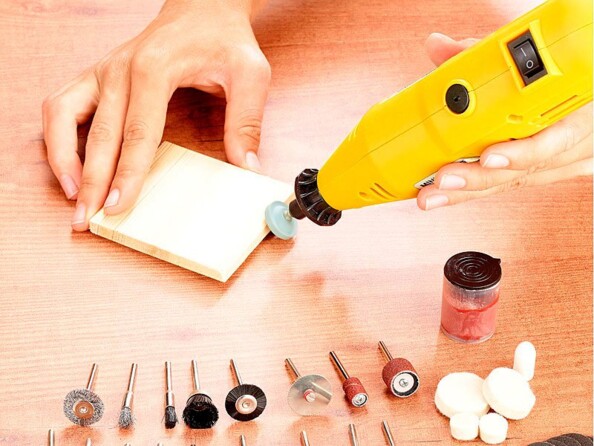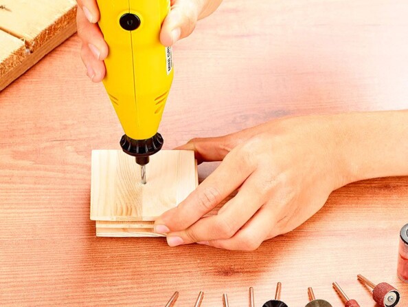 Cet outil de bricolage compact est fourni avec de nombreux accessoires qui vous permettent d’effectuer les tâches les plus variées : percer, tailler, fraiser, polir ou encore graver.
