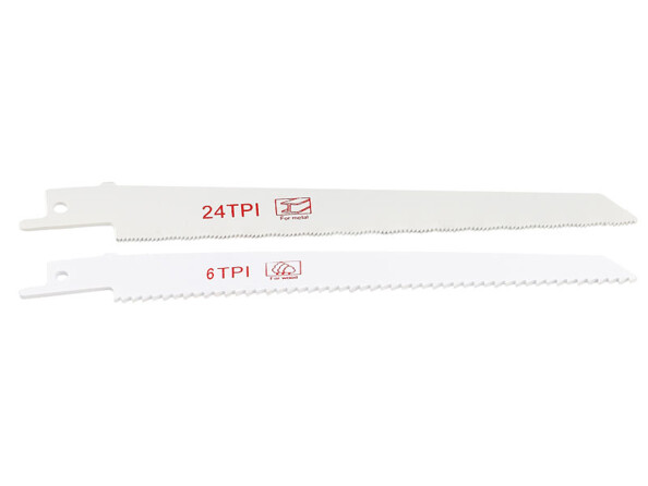 - Scie livrée avec 2 lames : 1 pour le bois, 1 pour l'acier