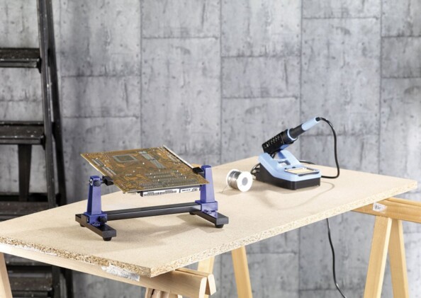 La pièce travaillée est alors parfaitement maintenue. Conçu pour tous les travaux de précision, cet étau est particulièrement adapté pour réaliser des soudures. Circuit imprimé ou modèle réduit, des objets jusqu'à 20 cm de largeur peuvent être placés entre les pinces de l'étau. L'atout de ce produit : grâce à la rotation à 360°, vous travaillez confortablement la pièce de tous les côtés. La surface antidérapante des dispositifs de blocage confère une parfaite stabilité à la pièce maintenue. Le socle en acier, résistant à la chaleur, convient parfaitement aux soudures : aucun risque si des gouttes de métal fondu tombent dessus.