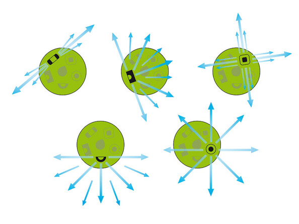 - 5 jets : cercle, petit et grand demi-cercle, carré, jet droit