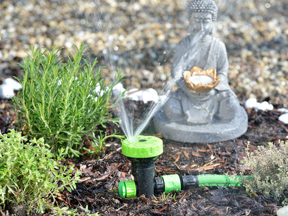Plantez simplement le piquet dans le sol, et tournez-le pour sélectionner un des 5 types d'arrosage. Vous arrosez ainsi parfaitement toute une pelouse ou seulement un parterre de fleurs. Grâce à cet arrosage ciblé, vous évitez le gaspillage en eau, et vous n'arrosez que votre parcelle, pas celles de vos voisins !- Arroseur de jardin à piquer dans le sol, avec 5 buses réglables