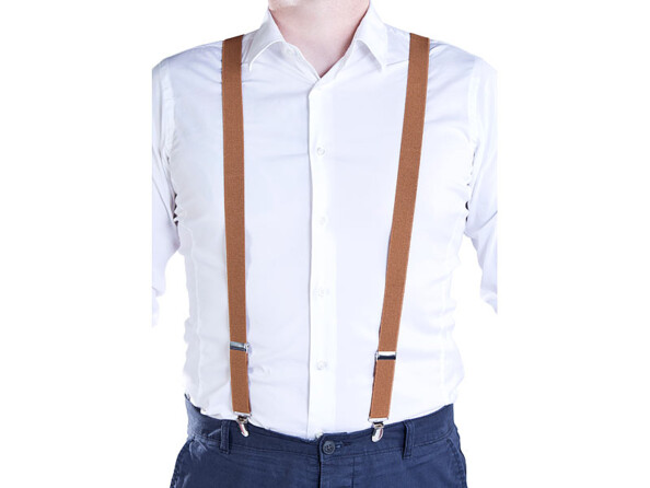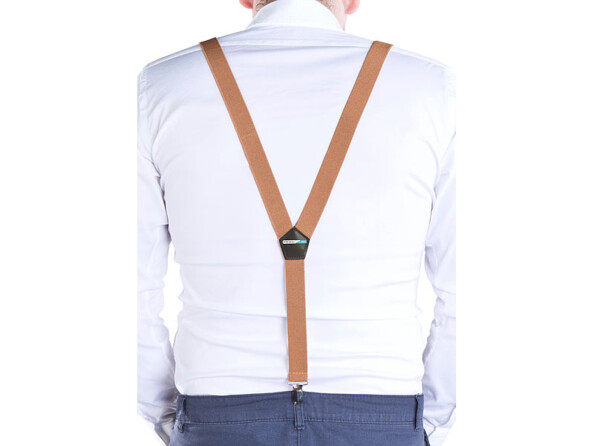 Style classique ou tendance : ces bretelles beiges en Y se portent aussi bien avec un costume qu'avec une tenue décontractée.