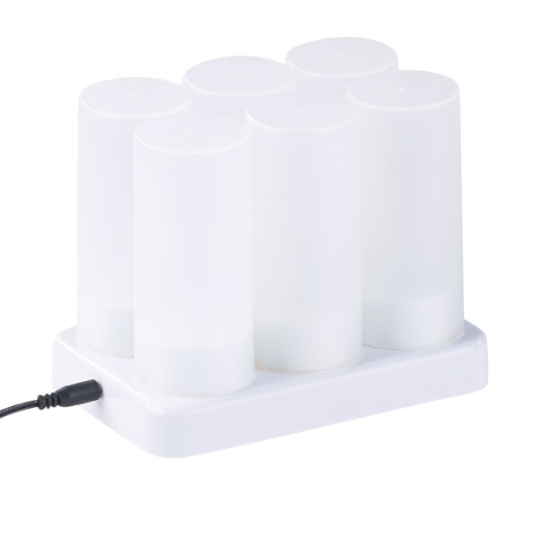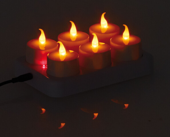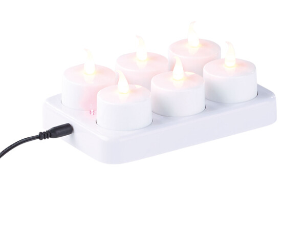 - 6 bougies plates à LED, avec 6 photophores en acrylique, station de chargement et adaptateur secteur