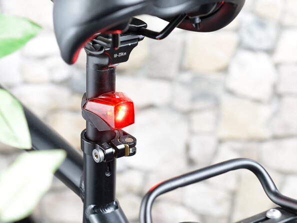 - Lampe de sécurité à LED livrée avec support à vélo, matériel de montage et câble de chargement USB (Micro-USB vers USB, 25 cm)