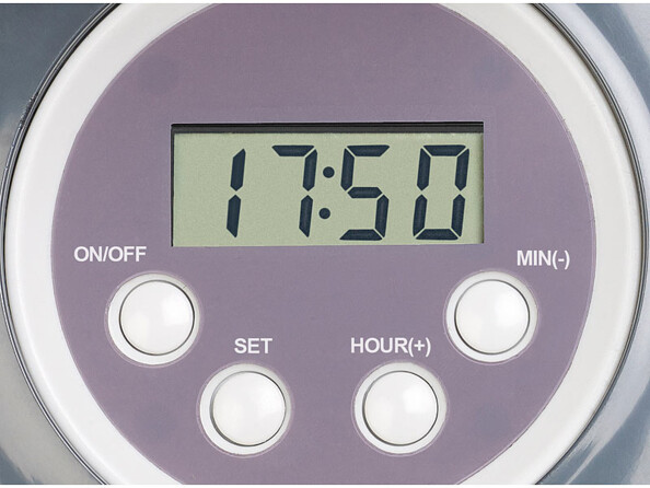 - Utilisation facile à 4 boutons : Marche/Arrêt, Réglages, Heure +, Heure -