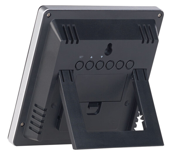 - Affichage de la température et de l'humidité intérieures et extérieures, de l'heure (format 12-24 h) et de la date