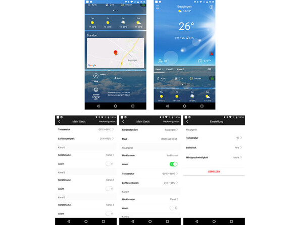 - Enregistrement de données par application gratuite Android / iOS : pour sauvegarder et évaluer les données météorologiques sur Cloud, afficher l'historique météorologique (journalier, hebdomadaire, mensuel), régler une alerte de température librement, afficher le lever / coucher du soleil et la vitesse du vent