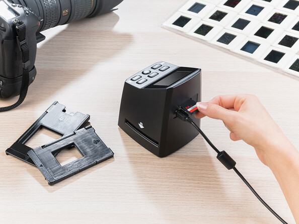 L'utilisation du scanner SD-950 est un véirtable jeu d'enfant. Insérez les négatifs ou diapositives dans le passe-vue correspondant et démarrez la numérisation en un seul clic. Vos photos seront ensuite directement sauvegardées sur votre carte SD.
