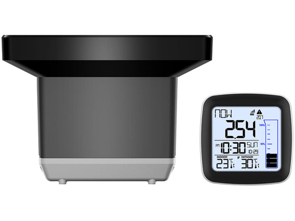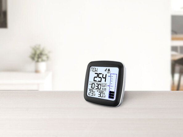 En cas de pluie imminente, la station météo vous prévient par le biais d'une alarme fiable et silencieuse. La quantité de pluie est automatiquement mesurée et enregistrée par le capteur extérieur. Ce même capteur dispose d'ailleurs d'une sortie d'eau, lui évitant ainsi d'être submergé lors des déluges ! Ses données sont ensuite affichées sur le grand écran de la station météo.