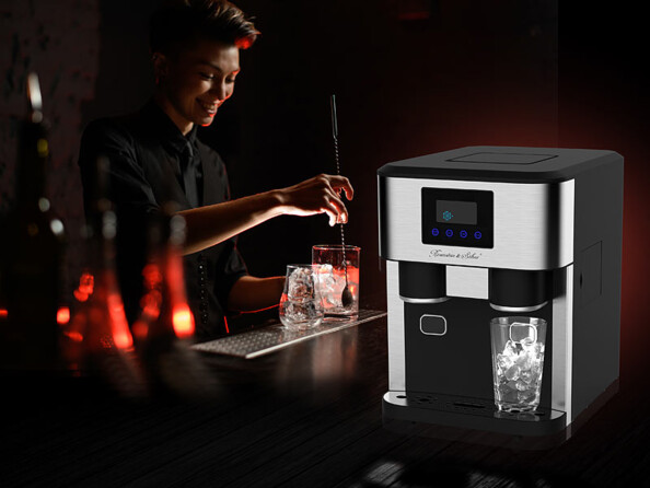 Une machine à glaçon avec 2 sorties et un écran tactile XXL