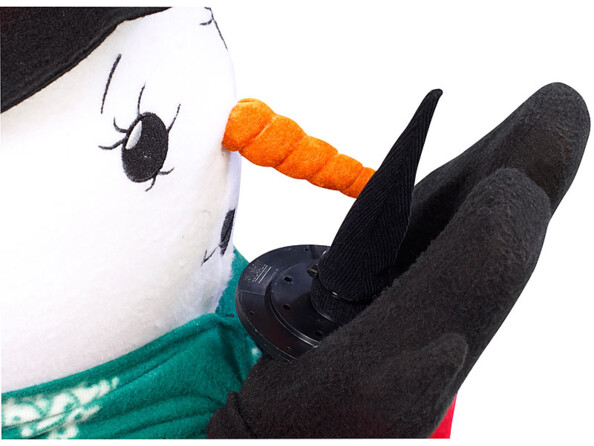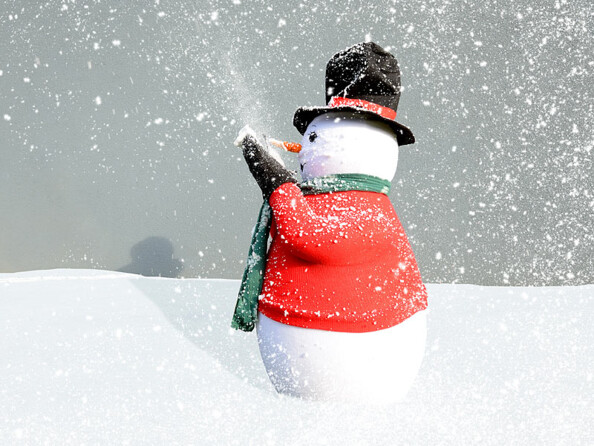 Ce joyeux bonhomme de neige projette de la neige autour de lui et distribue de la joie.