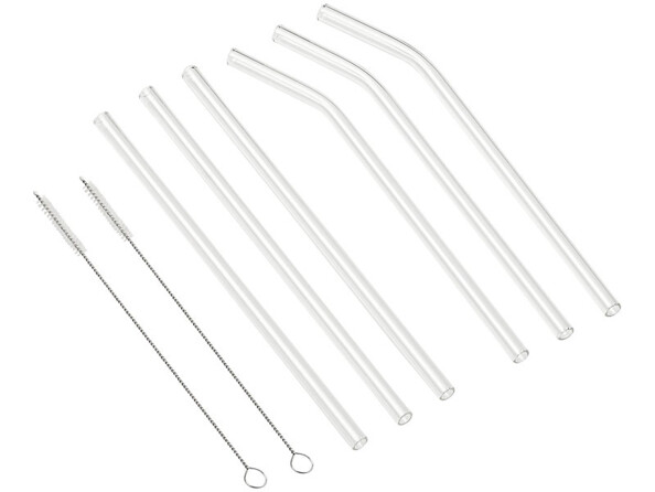 - Jeu de 6 pailles en verre borosilicate avec brosses de nettoyage