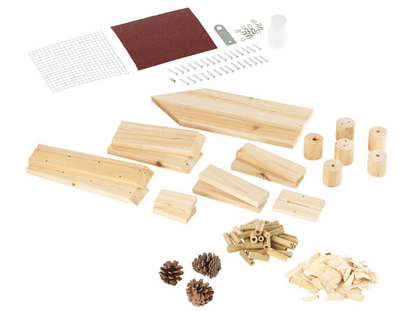 - Hôtel à insectes en kit avec matériel de montage, colle, papier de verre et instructions illustrées