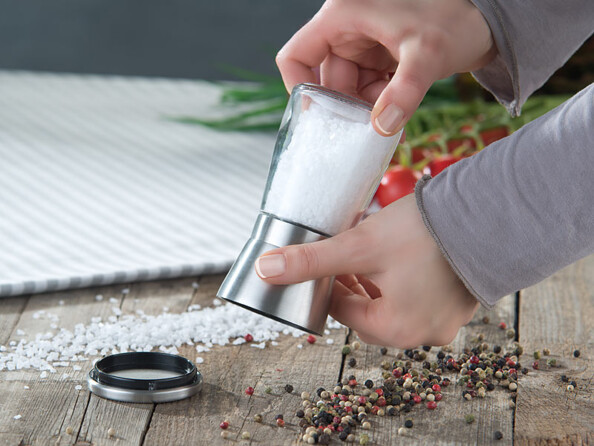 Grâce au grand réservoir à grains, vous pouvez assaisonner vos plats lors de la préparation et de la dégustation.