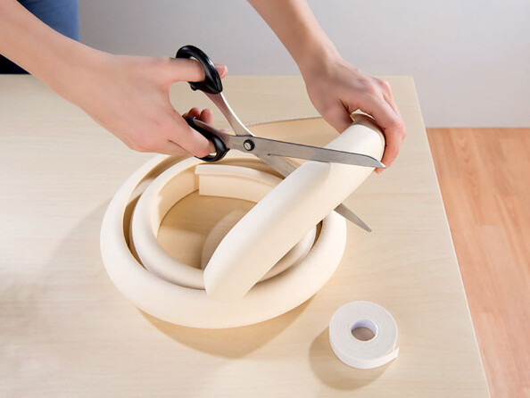 Ces protège-coins et bande en mousse rendent les coins tranchants moins dangereux.