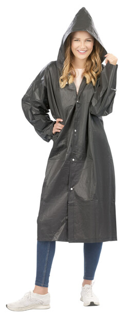 Ces manteaux de pluie à capuche noirs peuvent être refermés pour une protection maximale, et rangés de façon compacte dans une boîte à gant ou un sac.