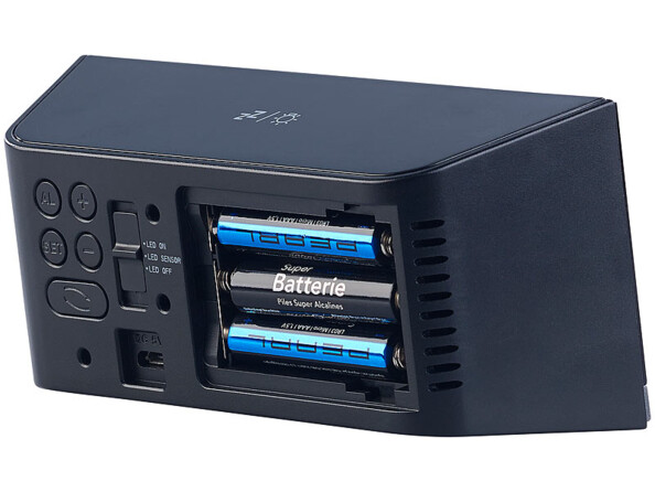 - Alimentation par Micro-USB (adaptateur secteur fourni) ou 3 piles AAA (non fournies)