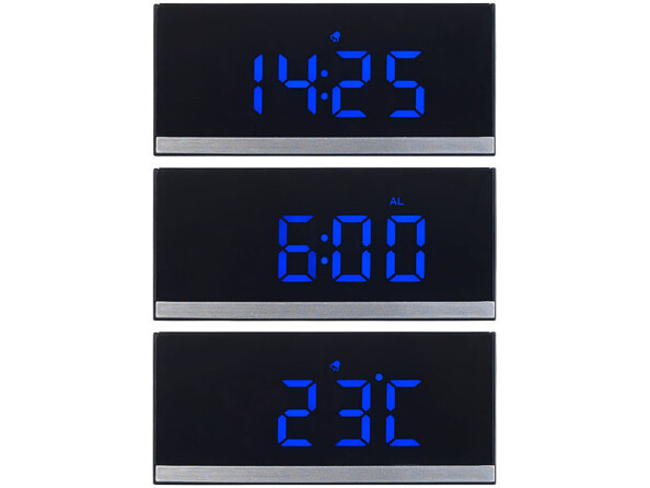 Plus qu'un simple réveil, l'horloge de table radio-pilotée vous affiche non seulement l'heure exacte, mais aussi la température ambiante sur son écran LED lumineux. Vous trouvez ce dernier trop lumineux pour vos yeux encore endormis ? Faites-en varier la luminosité sur quatre niveaux. Vous avez envie de dormir encore un peu sans pour autant risquer de manquer l'heure de réveil ? Il vous suffit de programmer la fonction Snooze : l'horloge sonne alors à nouveau quelques minutes plus tard.