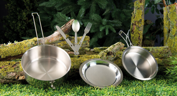 Couverts en métal emboîtables + Casserole + Poêle + Gamelle