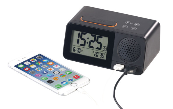 Le petit plus : branchez jusqu'à deux appareils mobiles sur les ports USB de votre réveil. Votre smartphone peut ainsi se réveiller aussi frais que vous !
