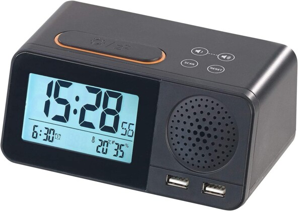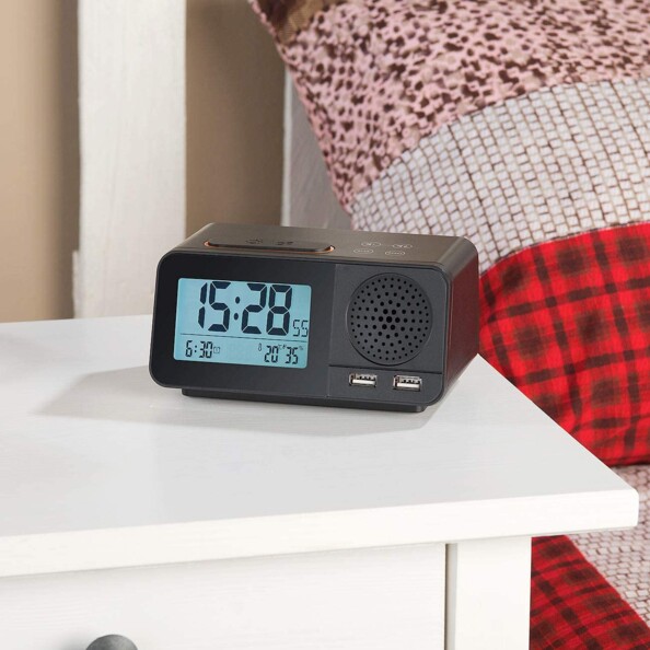 Radio-réveil avec 2 heures d'alarme, station de charge USB, thermo- & hygromètre à 29,95 €