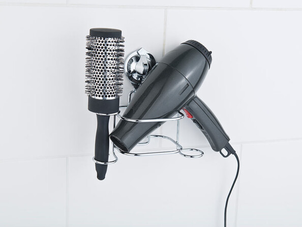 Apportez une touche pratique et décorative à votre salle de bains, et changez quand vous le voulez, sans coller ni percer aucun trou. Fixez ainsi rapidement votre porte sèche-cheveux, par une simple ventouse. Vous pouvez également y ranger plusieurs ustensiles en plus de votre sèche-cheveux : glissez par exemple des brosses à cheveux dans les 3 anneaux disposés sur les côtés. La fixation est particulièrement solide : grâce au système de vide d'air, la ventouse supporte jusqu'à 5 kg !