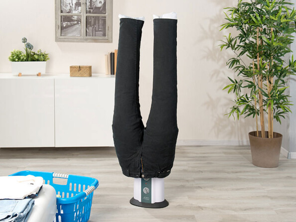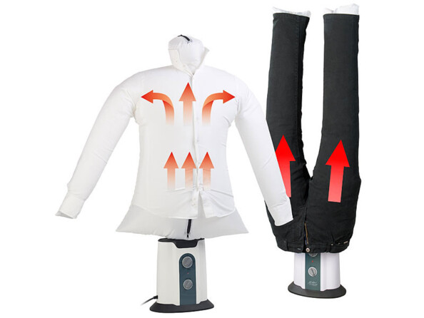 Glissez simplement votre chemise, chemisier, polo, t-shirt ou top sur le mannequin, puis allumez la soufflerie. L'appareil s'occupe du reste : il souffle un flux d'air chaud sur le vêtement, et les plis sont ainsi éliminés efficacement. Double utilité : des supports pour vêtements sont placés à l'intérieur du mannequin. Accrochez-y chaussettes et sous-vêtements qui sortent du lave-linge ; ils seront séchés une température de jusqu'à 65 °C. Avantage de cette technique : le séchage est efficace, mais n'endommage pas le linge délicat comme un sèche-linge.