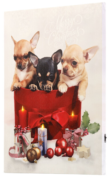 Tableau de Noël à 3 LED avec des chiots.