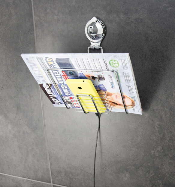 Percer des trous, c’est inesthétique et embêtant…tout cela est terminé ! Grâce à sa large ventouse, le porte-revues mural tient fermement en place sur toutes les surfaces lisses et ce en un clin d’œil !