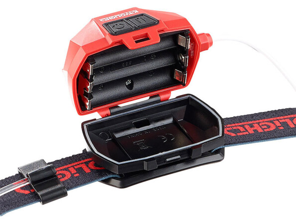 - Dimensions de la lampe : 65 x 42 x 37 mm, poids : 114 g (avec piles et bandeau)