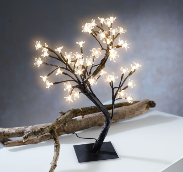Comme dans la nature, les branches sont ornées de fleurs de cerisier. Mais celles-ci sont illuminées par des LED. Et vous pouvez plier chaque branche pour l'orienter comme vous le souhaitez. Le petit plus : le socle en métal permet de poser le bonzaï de manière bien stable.