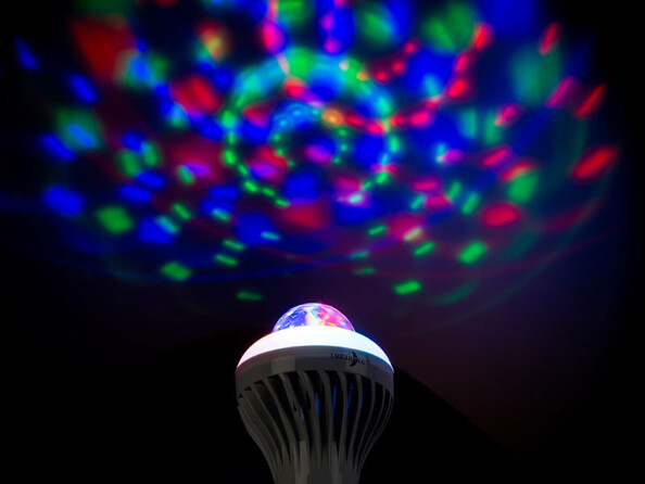 Au quotidien, l'ampoule fonctionne comme une ampoule blanche classique. Et lorsque la soirée tourne à la fête et que la musique est entraînante, transformez le salon en piste de danse en changeant simplement la lumière de l'ampoule disco. Son dôme se met alors à tourner et elle vous baigne ainsi d'effets lumineux rouges, verts et bleus festifs. Parfait pour changer d'ambiance en 1 seconde !