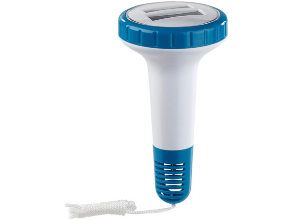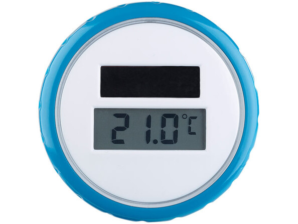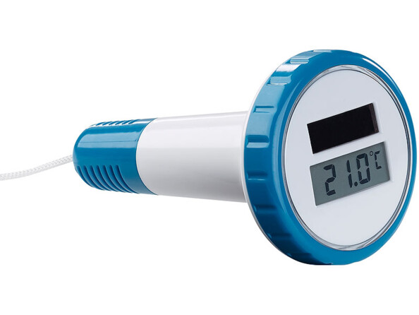 - Thermomètre de piscine numérique avec affichage LCD et panneau solaire.