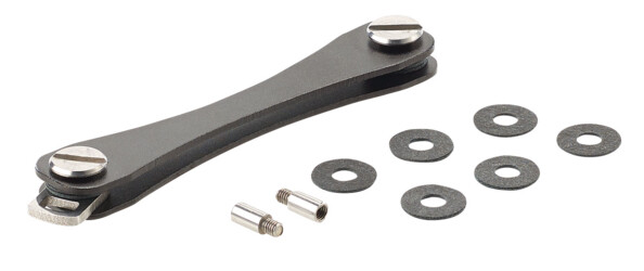 Rigide pour protéger vos clés, cet organiseur s'adapte avec souplesse à vos besoins : utilisez simplement une pièce de monnaie pour dévisser les tiges, et réassemblez l'organiseur avec les tiges supplémentaires fournies. Ainsi agrandi, l'organiseur peut accueillir jusqu'à 6 clés.