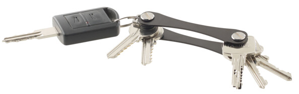 Avec cet organisateur, rassemblez toutes vos clés, elles sont parfaitement rangées. Quelle que soit leur forme ou leur taille, elles sont toutes parfaitement alignées l'une sur l'autre, et parfaitement protégées entre les barres en aluminium. Le porte-clés comporte également une boucle pratique pour tout le reste : fixez-y par exemple vos clés de voiture ou une clé USB. Et vous gardez l'essentiel au même endroit.