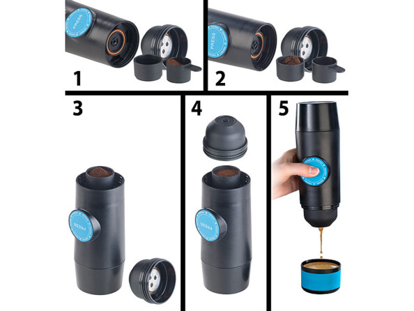 Le rêve des amateurs de café : préparez vous-même votre boisson, que vous soyez en voiture, en randonnée, en pique-nique ou en camping.