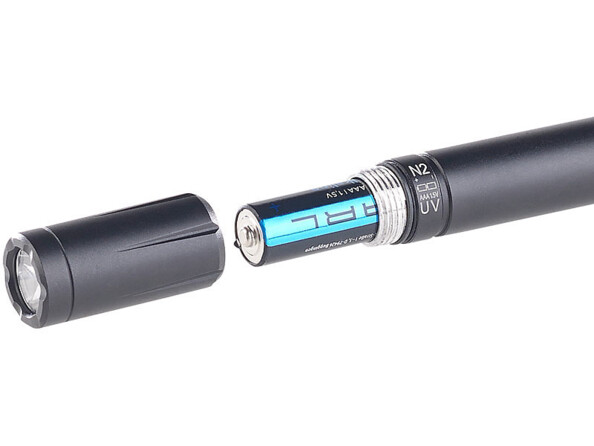 Vous pouvez même distinguer les signes de sécurité sur les billets ! Pratique et mince, la lampe stylo se glisse facilement dans votre poche, sur votre bloc-notes, etc. et vous suit partout. Pas de risque de l'abimer : avec son boîtier en aluminium robuste, ce petit appareil est ultra résistant et protégé contre les projections d'eau ! Le compagnon idéal au bureau, chez vous, en voyage, sur un chantier de construction…