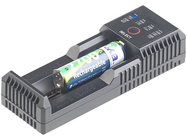 - Types d'accumulateurs pris en charge : NiMH / NiCd (1,2 V, AA / AAA / AAAA / C / SC), li-ion (3,7 V, type 18650, 18490, 18350, 17670, 17500, 16340, 14500, 10440), LiFePo4 (accumulateur en phosphate de fer lithié, 3,2 V), accumulateurs High Capacity (3,85 / 4,4 V) pour appareils de Samsung, LG, Panasonic