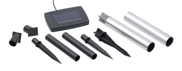 - Sphère lumineuse avec panneau solaire, pieds de support, piquets