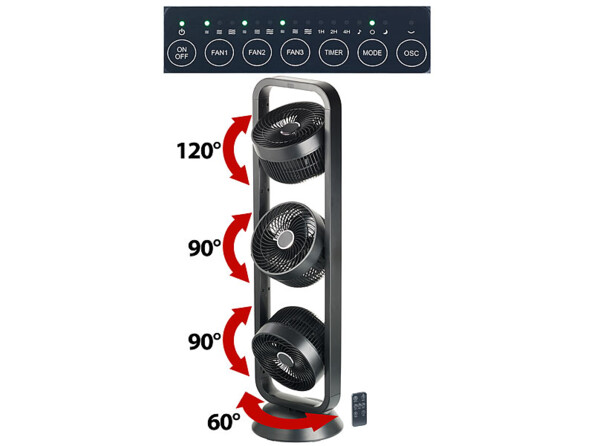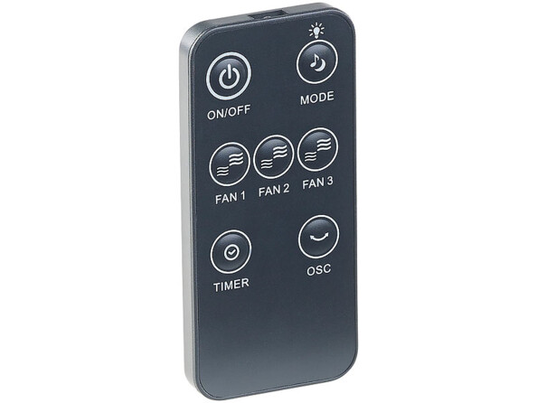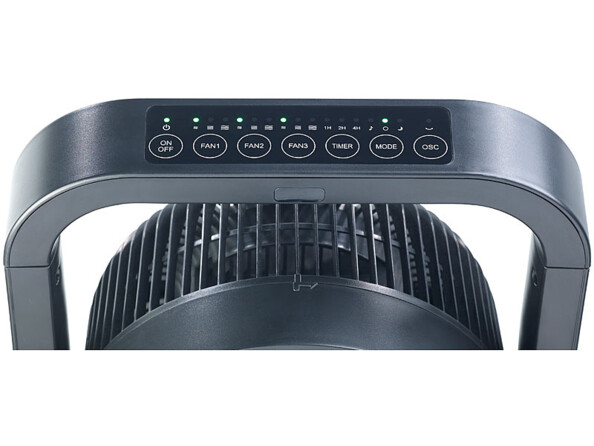 - Contrôle facile par 7 boutons tactiles : marche/arrêt, ventilateur 1, ventilateur 2, ventilateur 3, minuteur, mode, oscillation
