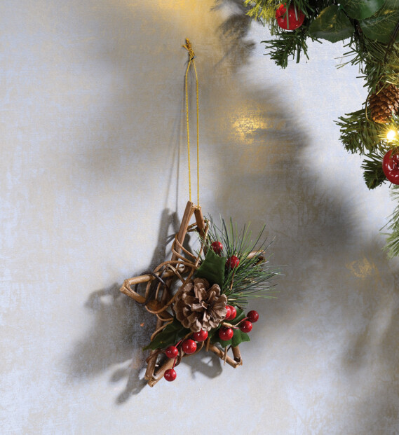 Embellissez vos portes, murs et fenêtres avec des étoiles en rotin, portant des branches de sapin, des baies rouges et des feuilles synthétiques, mais surtout parées de véritables pommes de pin. Et évadez-vous quelques instants en contemplant votre jolie décoration.