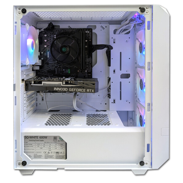 - Alimentation : bloc d’alimentation SQ-WHITE 600 W 80+ avec ventilateur silencieux 120 mm