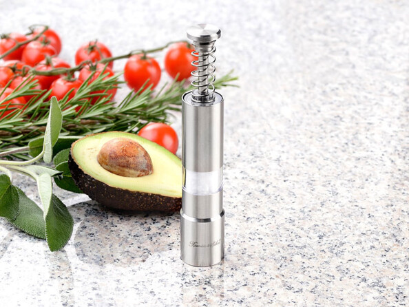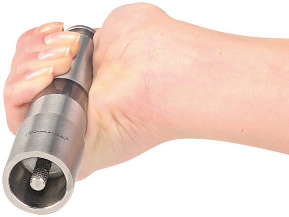 De petite taille, le moulin tient dans la main ce qui le rend facile d'utilisation. Son mécanisme innovant nécessite seulement une pression du pouce pour activer les mâchoires en acier. Fabriqué en acier chromé robuste, le moulin est agréable à utiliser.