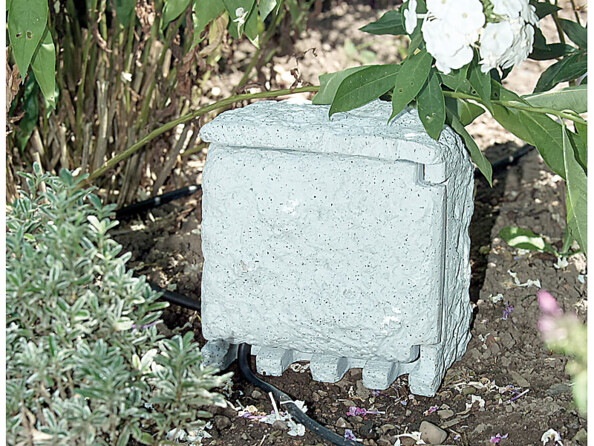 À l'intérieur de la pierre, vos installations électriques sont protégées de manière optimale contre les salissures et les projections d'eau. Le plastique est adapté à une utilisation en extérieur.