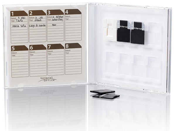 Ce boîtier CD contient en fait des compartiments numérotés pour ranger 8 cartes SD.