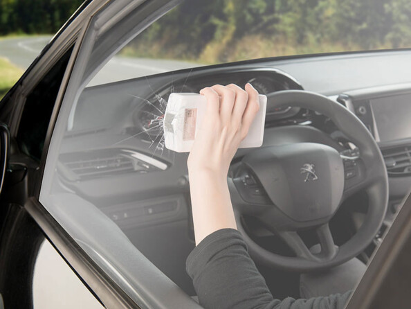 Et en cas d'accident de la route, sortez rapidement de votre véhicule en brisant la vitre.