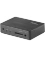 - Lecture des cartes SD/MMC (4Go maxi, compatible SDHC) et mémoires USB (120Go par partition FAT32 maxi)